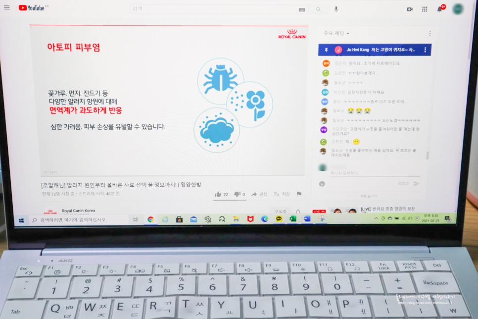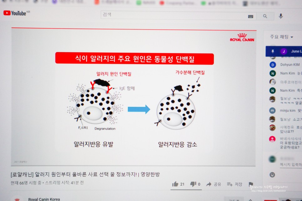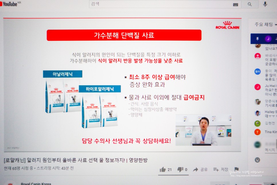 솔직히 말해서 알레르기가 없는 강아지는 거의 없기 때문에 이번 세미나도 모든 애견가들이 들으면 좋은 내용이었지만 강의 시작 2분 전에 로얄캐닌 유튜브에 들어가 보니 이미 많은 강아지 가족분들이 이미 들어와 있었습니다 ^^실제로 로얄카나안 푸드를 주다가 이 세미나를 알게 되신 분들도 많았습니다~
