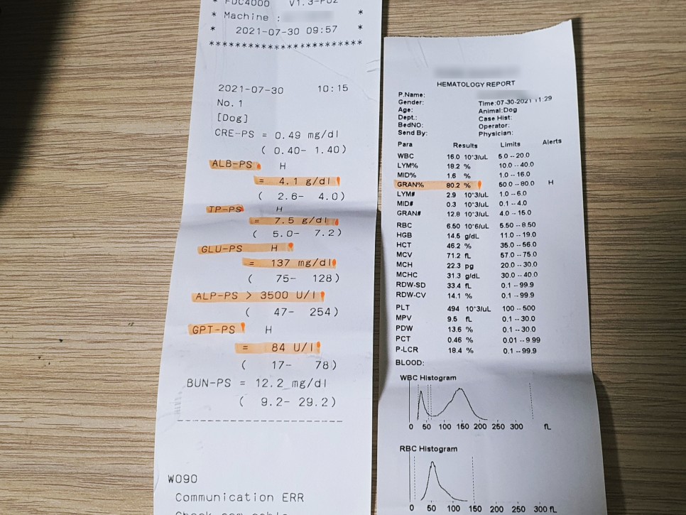 우리 강아지는 쿠싱 증후군으로 간, 담도, 혈당, 혈압, 염증 수치, 혈전 등 정상적인 강아지에 비해 매우 좋지 않습니다.
