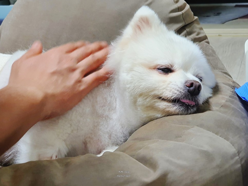 슈가가 아직 마취에서 깨어나지 않아서 침을 흘려서 인지하지 못하고 자꾸 두리번거렸어요.