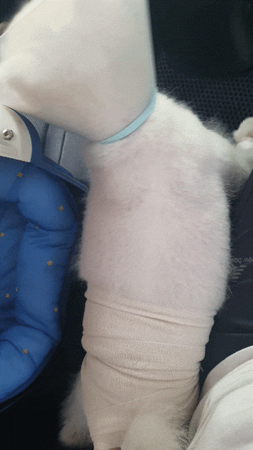 붕대와 거즈도 서비스로 더 준비해 주셔서 저희가 집에서 직접 소독, 붕대를 매번 갈아 드리기로 했습니다.