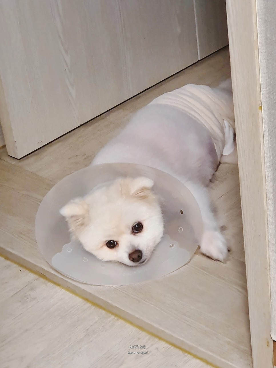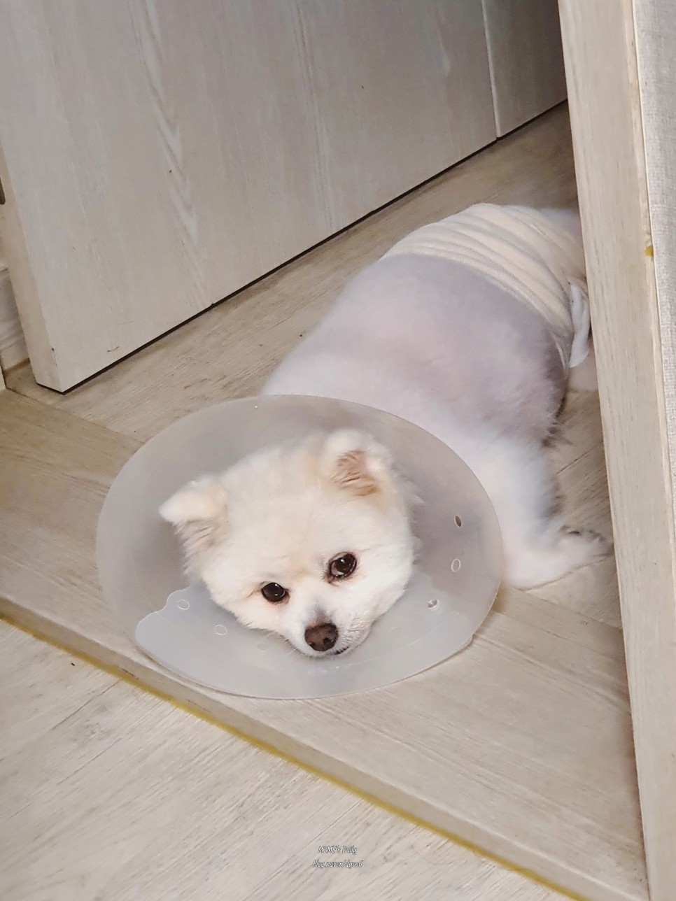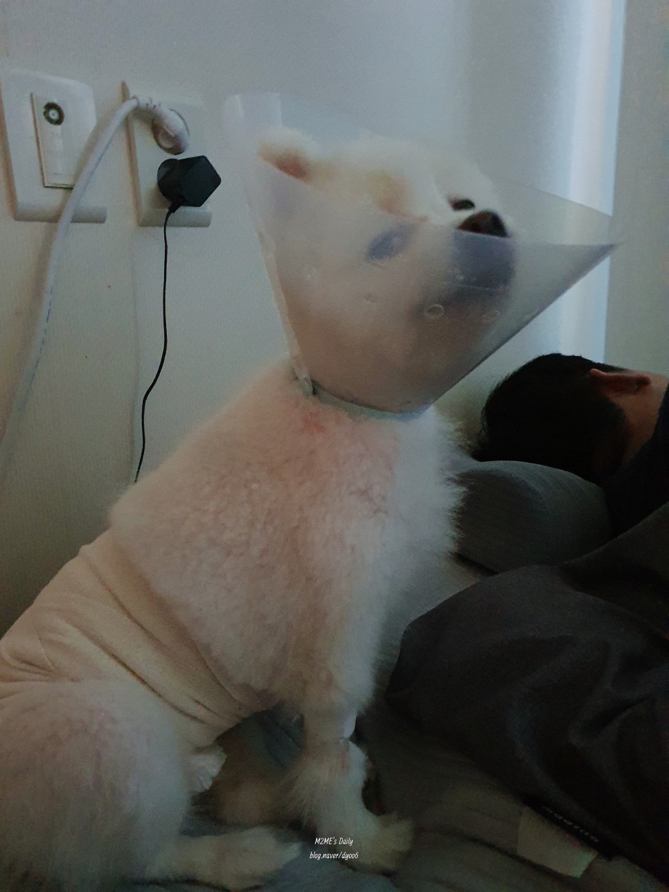 - 산책, 태그 놀이, 과격한 움직임, 자극적인 행동 모두 2주간 금지되었습니다.만약 그러니까 실밥이 풀려서 완전히 붙을 때까지 목욕도 금지!