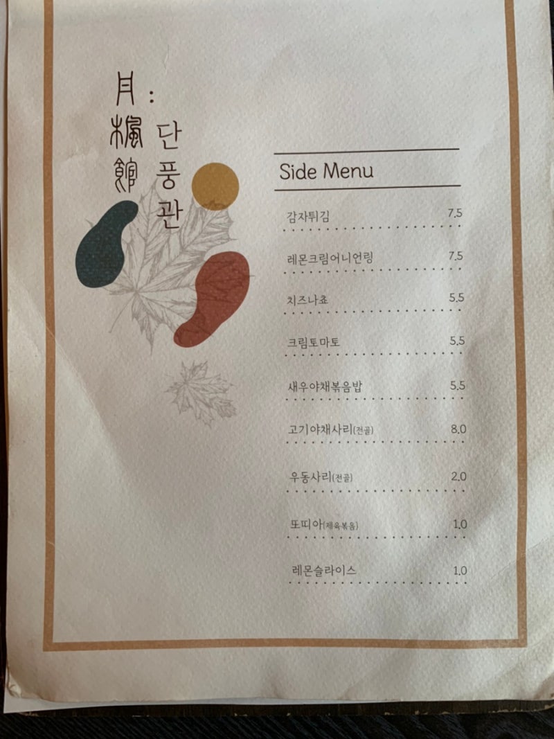 수유단풍관 메뉴, 단풍관 메뉴는 간결하지만 파스타부터 냄비, 찜, 샐러드 등의 식사에도 안주로 좋은 메뉴로 구성되어 있는 조리입니다.파스타16.0 미나리아사리찜17.0 주문완결!
