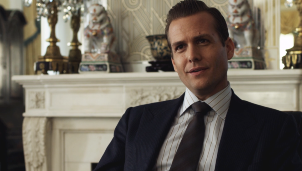 가방을 들고 호텔에 가는데 잠복경찰에 쫓기는 마이크. 그러다가 우연히 로펌 면접장을 보게 됩니다. 경찰에 쫓겨 그만 하비와의 일대일 면접실에 들어가 버립니다. 하비는 마이크에게 질문을 하면 꽤 좋은 머리와 입담을 가진 능력을 보게 되고,