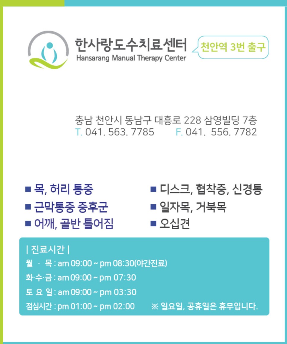 #천안도수치료 #한사랑병원 #아산족저근막염 #아산오십견 #천안도수 #아산도수 #천안한사랑병원