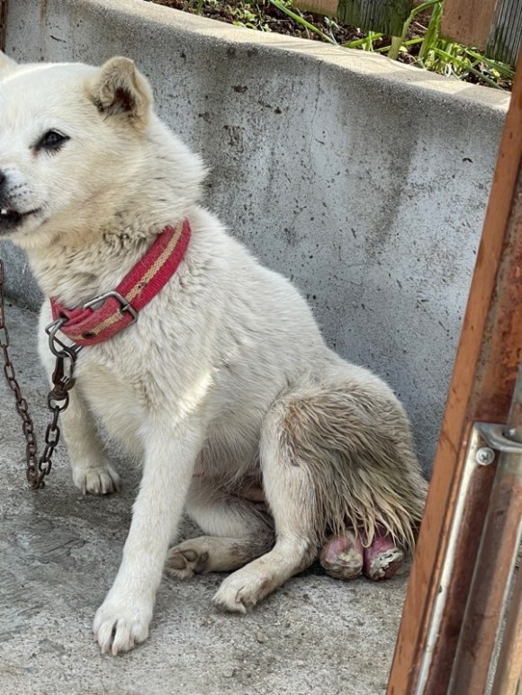 아무리 식당 앞에서 묶어 기르던 개라 해도 생식기가 탈장이 돼 아파하고 그 몸으로 아기 젖을 먹이는 모습을 보고 어떻게 방치할 수 있을까.생명에 대한 최소한의 연민도 없는 인간. 꼭 똑같이 당하길 바랍니다.정말 더 심한 욕을 하고 싶은데…많은 분들이 이 글을 읽었으면 해서 자제합니다.