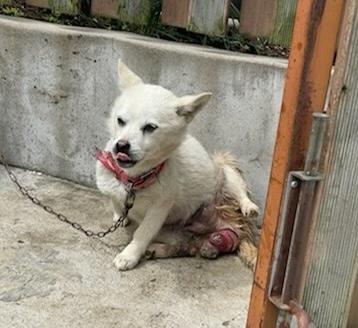 이를 보지 못한 제보자가 주인을 설득해 광주동물보호소에 구조됐지만 의료장비가 부족한 보호소에서는 수술이 어려운 상황이고 탈장 부위가 크고 괴사까지 진행되고 있어 급한 일이었습니다.