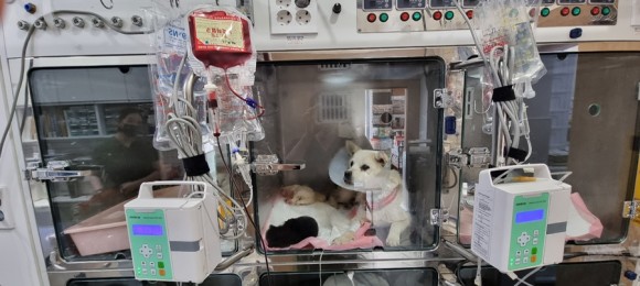 그래서 입원 가능한 병원을 긴급 섭외하여 수술을 하려고 했는데 빈혈 수치가 높아 먼저 수혈시킨 후 수술을 진행하였습니다.다행히 수술이 잘 되어 약 10일 정도 입원하고 퇴원할 예정인데, 이 상태에서 아이들이 보호소에 들어가면 포화상태의 보호소에서 어떤 전염병에 노출될지 매우 걱정됩니다.