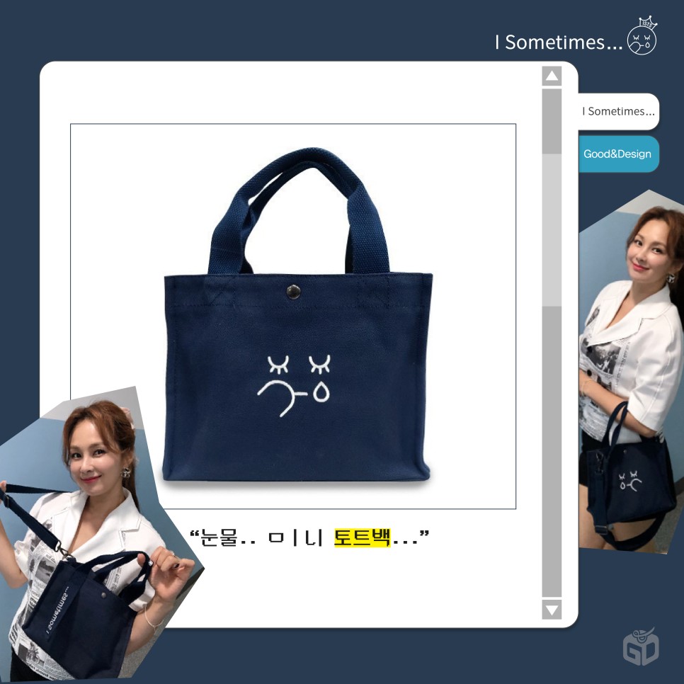 상품 제작뿐만 아니라 굿앤디자인이 로고 디자인을 담당하고 채영의 #아이썸타임즈 브랜드가 출시됨과 동시에 귀여운 미니 토트백을 제작하였습니다. 🙂 아이썸타임즈 : 눈물 미니 토트백 제작 G&D