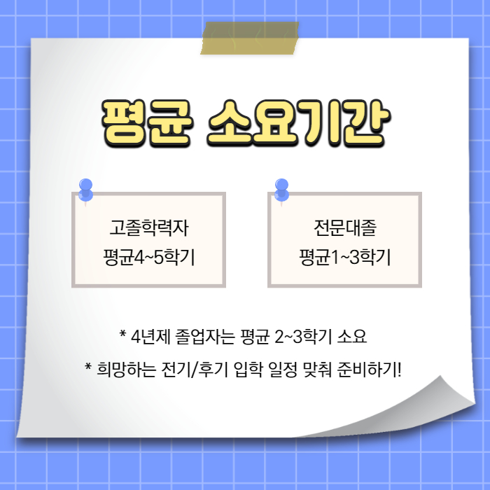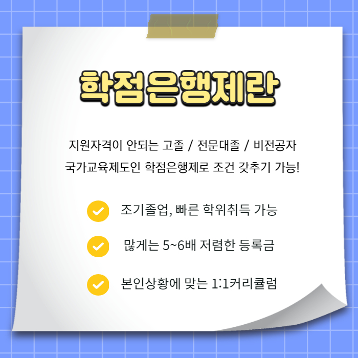 다만 지원하려면 4년제 졸업장이 필요한데, 처음에는 2년제 졸업으로 학력이 부족했기 때문에 추천받은 학점은행제를 통해 학사학위를 먼저 받는 것이 순서였습니다.