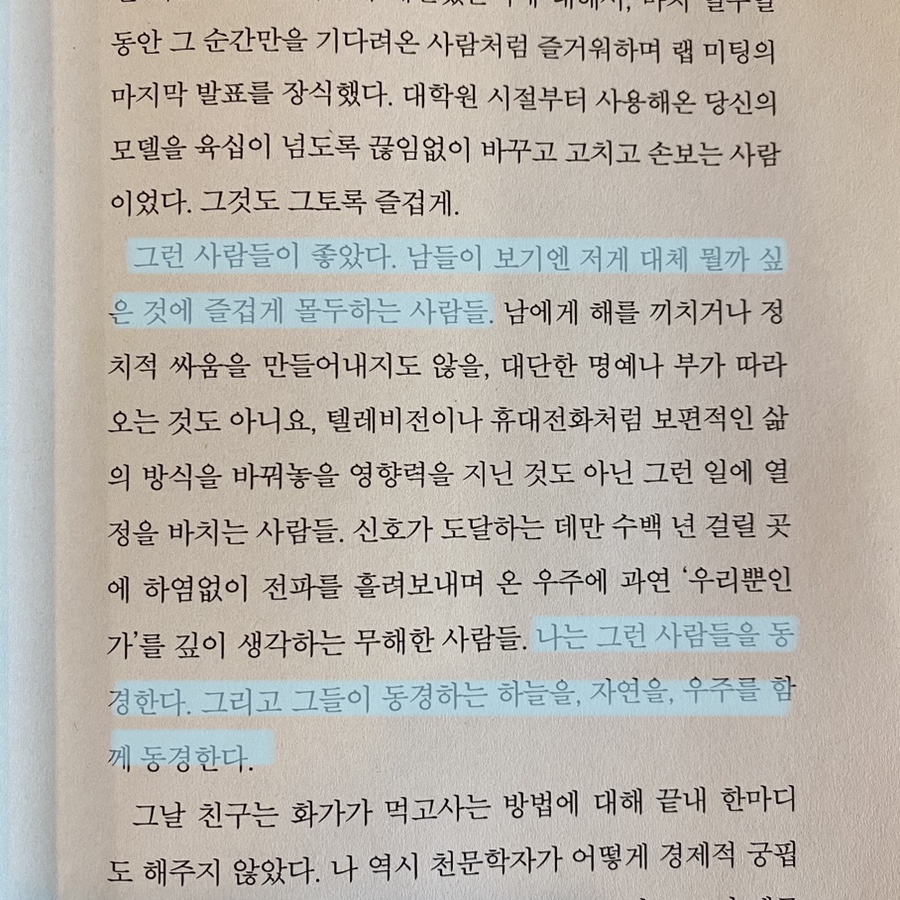 나는 그런 사람들을 동경한다. 그리고 그들이 동경하는 하늘을, 자연을, 우주를 함께 동경한다.”