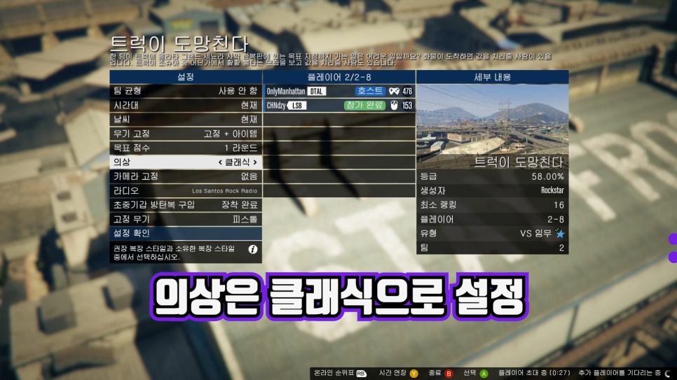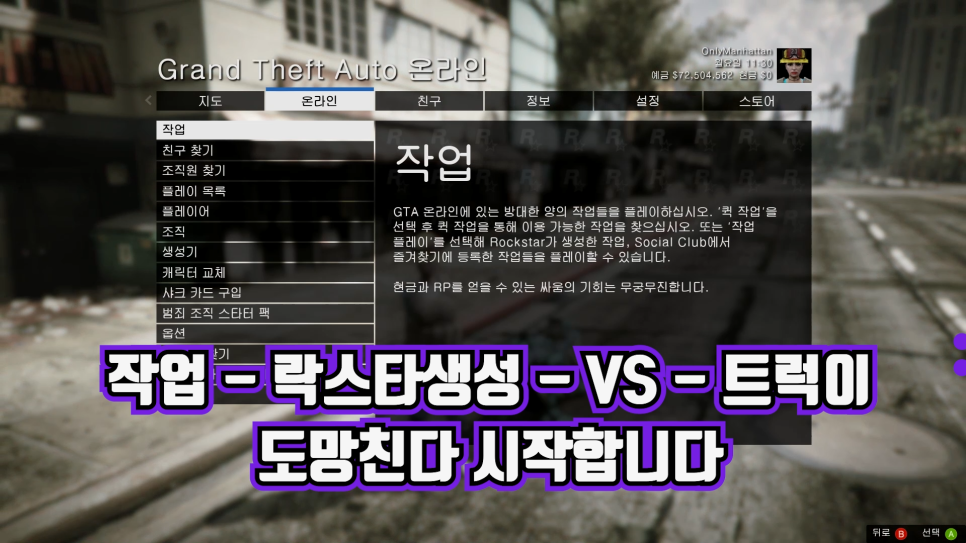 작업은 록스타 생성 VS 트랙이 도망가기를 이용합니다.둘 이상이 필요한 임무이기 때문에 친구가 필요합니다.