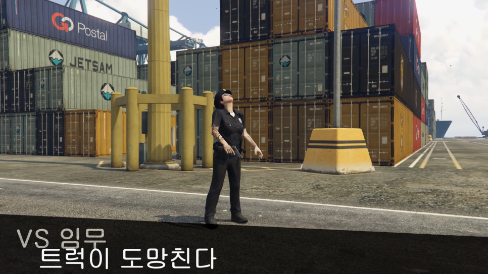 VS 임무 트럭이 도망간다.경찰복 작업 정말 오랜만에 들어왔어요.