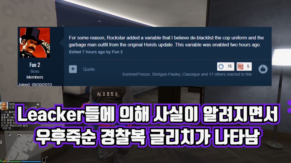 GTA5 경찰복장 글리치(여름업데이트온라인1.51) 경찰복에 대해 달라진 록스타의 조치에 그 다음 행보가 기대되는 것은 모든 사용자의 마음 같네요..!