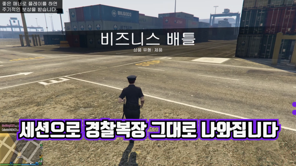 세션에서 나오면 경찰 복장을 그대로 입고 나온 모습을 확인할 수 있습니다.