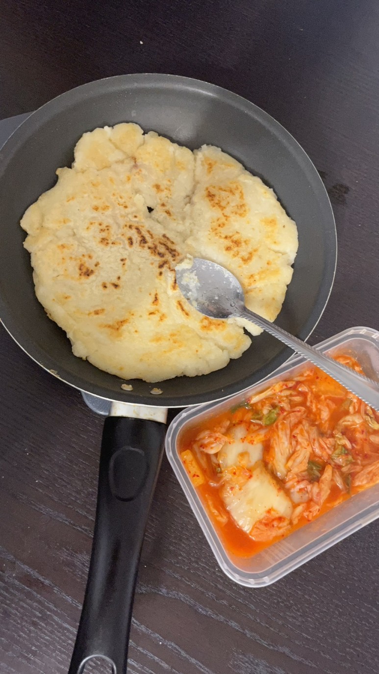 갑자기 김치찌개가 먹고 싶어져서 김치전을 만들어 먹었다.베이컨 한장 잘라서 넣었더니 맛이 딱 맞고 너무 맛있었어… 기가 막혔다.