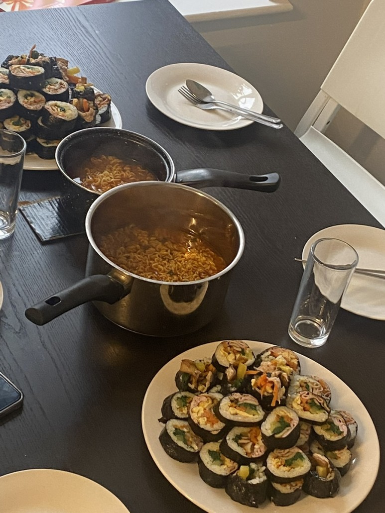 매일 오는 것이 아니라 클로이표 김밥 가끔 한국인 친구들이 모여 이렇게 한식 파티를 하곤 했는데 명절 같은 분위기를 자아낸다. wwwwwww
