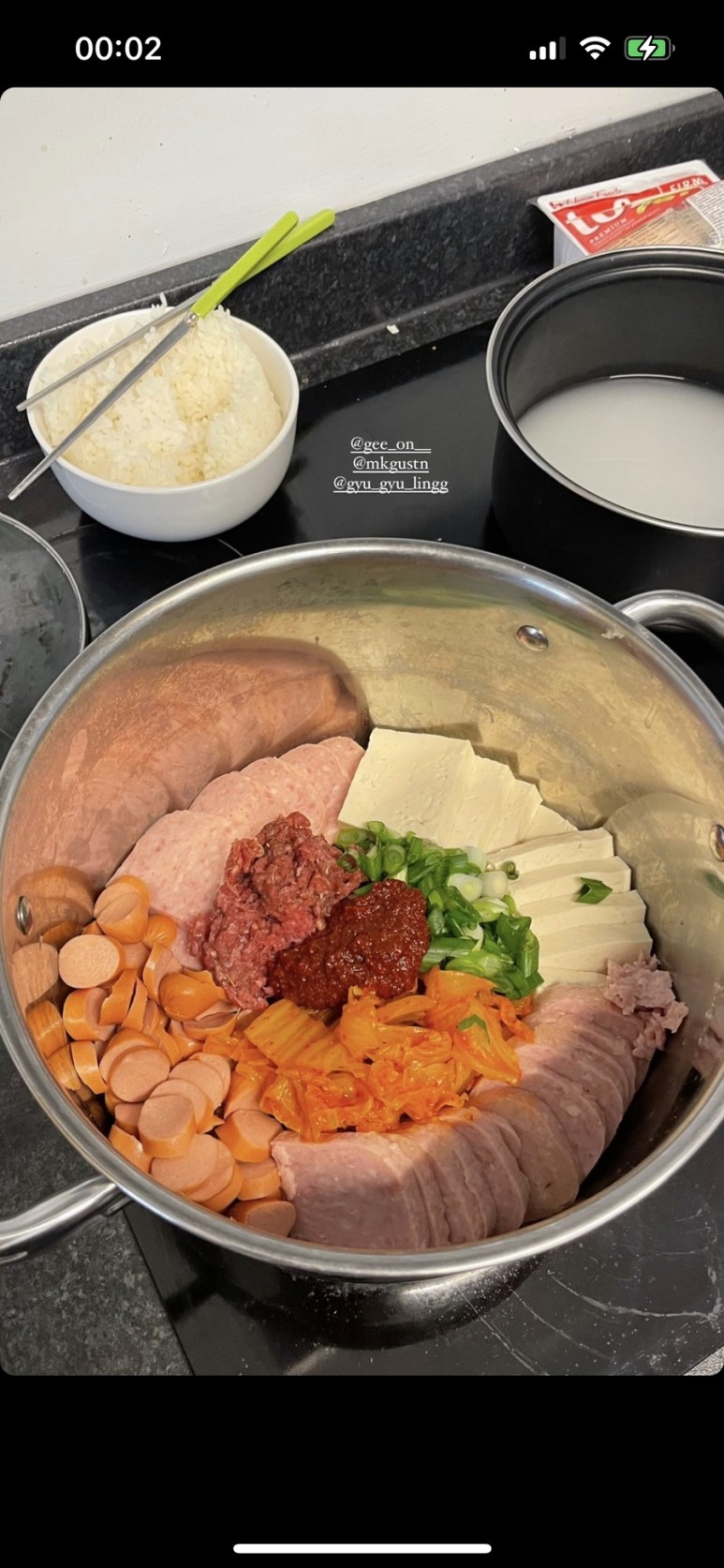 첫 번째 사진은 다같이 만들어 먹은 부대찌개인데 사골국이 없어서 쌀뜨물로 만들었다.4명이서 저 큰 양동이를 뜨는데 20분 걸렸나? 운전기사 식당에 온 줄 알았어.