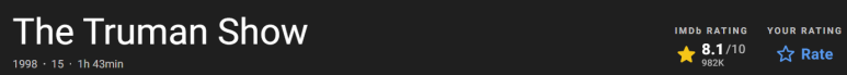 블로그를 다시 시작하기로 결심하고 작성한 두 번째 게시물이어서 지금과는 너무나 다른 형식과 글의 질 때문에 리뷰를 보기 힘들지도 모르지만 어쨌든 이 작품이 오랜 시간이 지난 지금까지 다루어지는 것은 클래스는 영원하기 때문이 아닐까 생각합니다. 이유 있는 평점과 이유 있는 추천 영화 <트루먼 쇼>는 지금 넷플릭스에서 만나보실 수 있습니다.