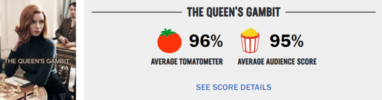 출처 : 로튼 토마토 & IMDB 사이트 실제 이야기는 아니지만 실제로 있었던 체스 천재 이야기와 너무나 흡사한 7부작 TV 미니 시리즈입니다. 주인공은 넷플릭스의 인기스타인 안야 테일러 조이가 주연으로, 작품 중 체스에 빠진 천재 여자아이 베스를 연기하는 내용입니다.