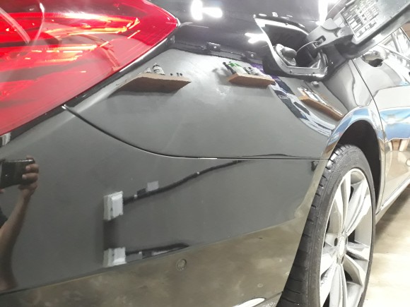 해당 차량 작업 중 가장 오래 걸리는 오른쪽 리어 펜더 쪽입니다.