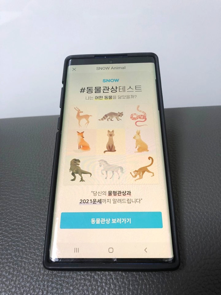 스노우앱에서 ‘동물관 위 보러가기’를 클릭하면 스노우앱의 동물관상을 확인하실 수 있습니다.