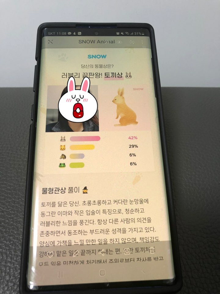 러블리한 끝판왕! 토끼님!!!! 근데 제가 처음 했을 때는 말상이었는데 이게 매번 다른 느낌이네요. 재미로 해보세요 흐흐흐