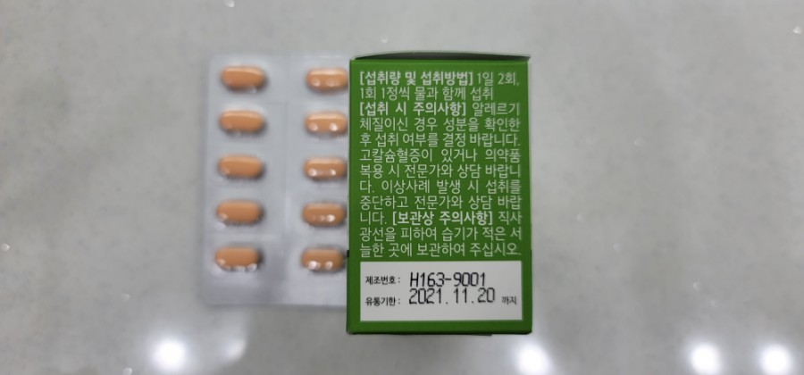 하루 2알 식후에 섭취하세요. 총 한달 분량입니다.스토어팜 리뷰, 평판도 확인할 수 있어서 기쁘고, 먹기 전부터 발송될 때까지 기대하고 있었습니다.건강을 위해서 먹는거니까 안전성 인증된걸 선택하는건 당연하죠!!!