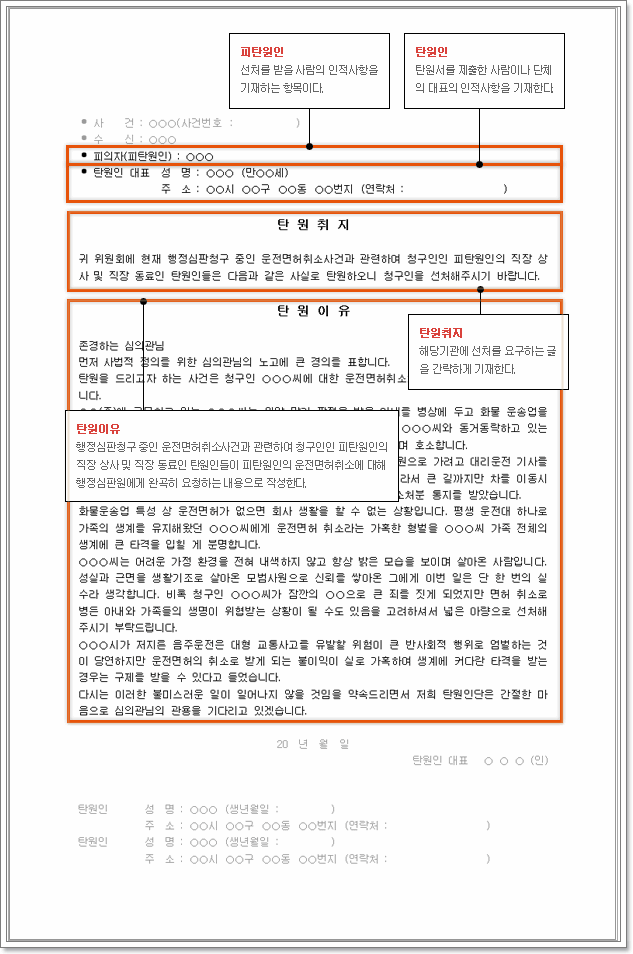 호소문 형태의 본서식 작성의 경우 크게 선처호소와 엄벌호소로 나눌 수 있습니다. 즉, 피의자 및 피고인의 주변 인물이 객관적인 관점에서 진술하고 부탁하는 형태라고 할 수 있습니다.△선처 사례=최근 술을 마시고 오토바이를 모는 전봇대를 들이받은 뒤 과거 음주 전력으로 인한 가중처벌이 우려돼 동승자인 여성으로 운전자를 바꿔타려 한 사실이 적발된 사건이 있었습니다.