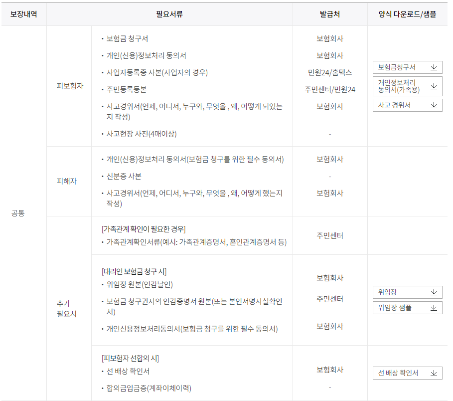 보험금 청구서 및 개인정보동의서(3장)