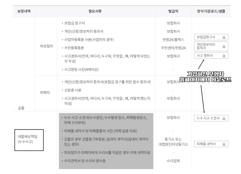 누수가 발생하신 분은 서류를 미리 준비하세요.^^