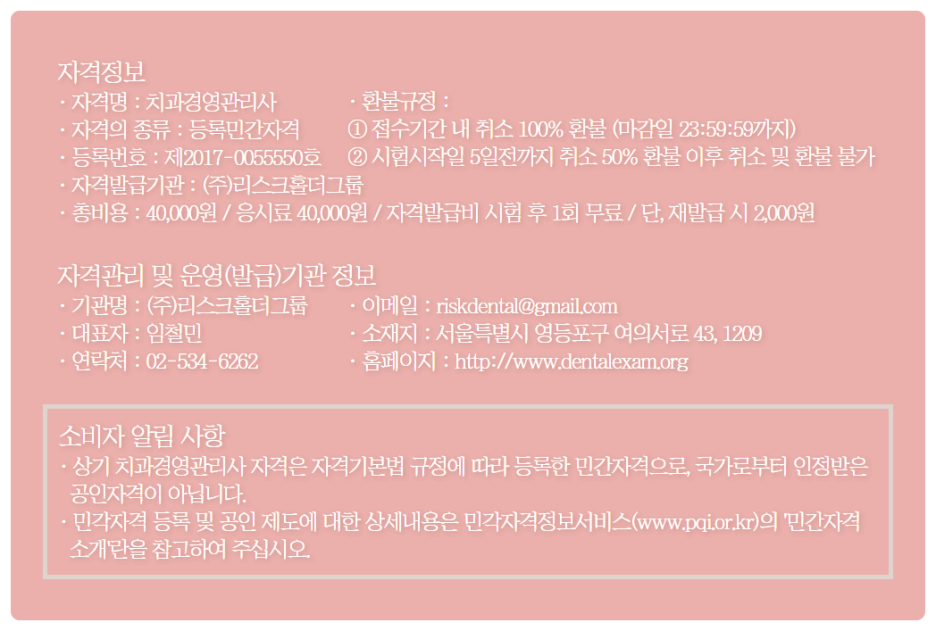 진료를 제외한 전체적인 운영에 필요한 인력.취업은 물론 프리랜서 활동이나 의료경영 컨설팅 관련 회사 창업에도 도움이 된다. 단순히 이력서에 한 줄 기입할 수 있을 뿐 아니라 실질적으로 필요한 라이선스다.이르면 올해 4월에 시험을 치르고 정년 제한이나 별도의 응시 자격이 없는 만큼 누구나 시험을 볼 수 있다. 다시 말해 꼭 학생이 아니어도 상관없다는 얘기다. 지금관련된일을하시는분들이나직무와관련이있을때도요. 자신의 역량을 한층 높이는데 필요하다고 생각되는 모든 분이 수험 가능하다.