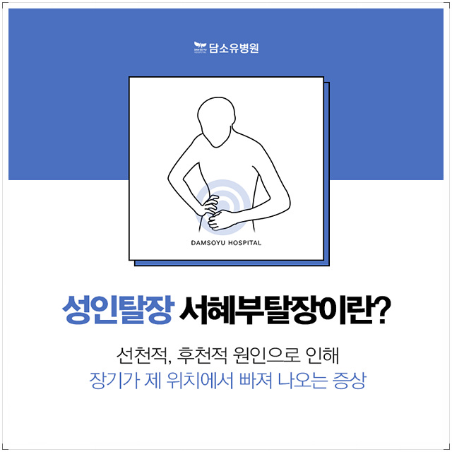 복벽의 약화된 틈에서 나와 장기를 둘러싼 복벽의 부위가 약하거나 결손되어 장기가 빠져나가 복벽에서 나오는 질환을 말합니다. 탈장 종류 중 서혜부의 경우 다리 주름 상부에 생기는 것으로 고환까지 내려갈 수 있으며 대퇴부는 복부 다리 주름 아래쪽에서 발생하며 여성의 발병 확률이 높다고 합니다. 반흔은 상처가 약해져서 벌어지기 때문에 탯줄은 주로 성인보다 소아에서 발생합니다.