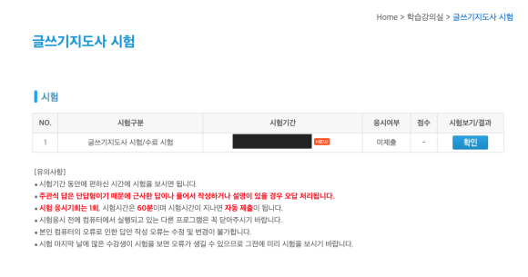 그리고 글쓰기 지도사 1급 자격증 발급을 위해 자격증 발급 페이지에 갔습니다.