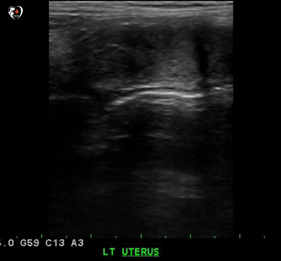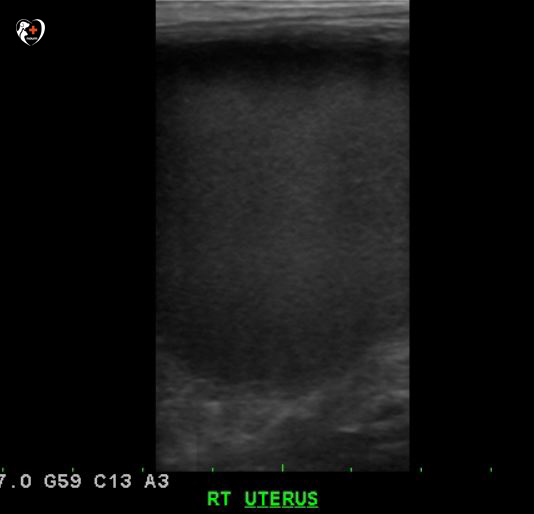 복부 초음파 검사를 실시하여 비뇨기계, 생식기계를 샅샅이 조사해 본 결과, 오른쪽 확장 자궁이 보였습니다.