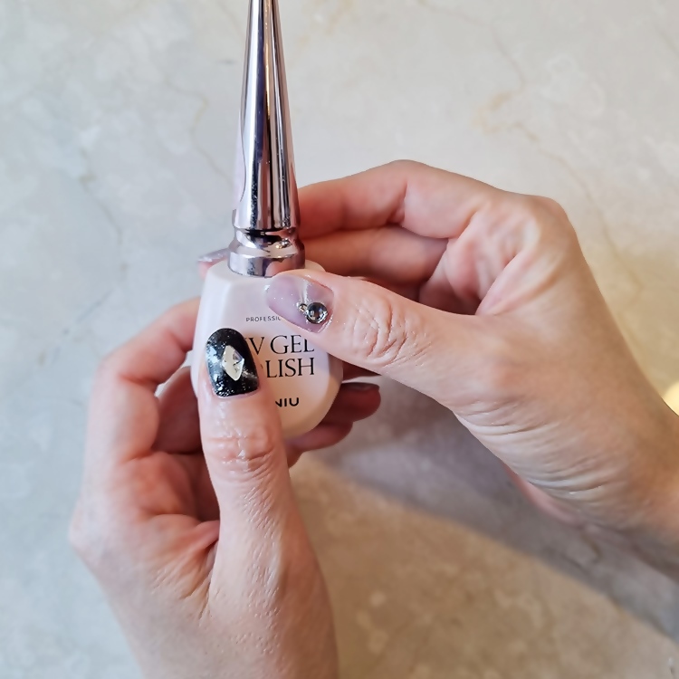 엄지손톱에는 포인트가 되도록 파츠를 달았어요~ 왼쪽과 오른쪽에 다른 디자인을 입히면 더욱 세련된 느낌이랄까!!파츠 사이즈도 욕심내기보다는 기본자석 네일 디자인을 살리면서 포인트가 되는 크기를 잘 고른 것 같아 너무 만족스러워요~