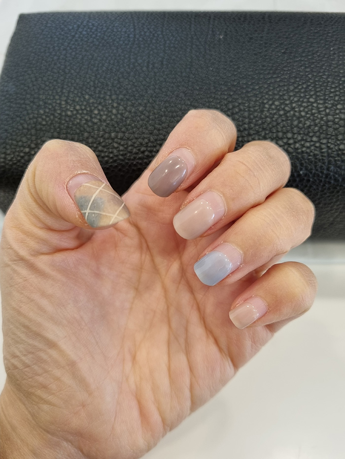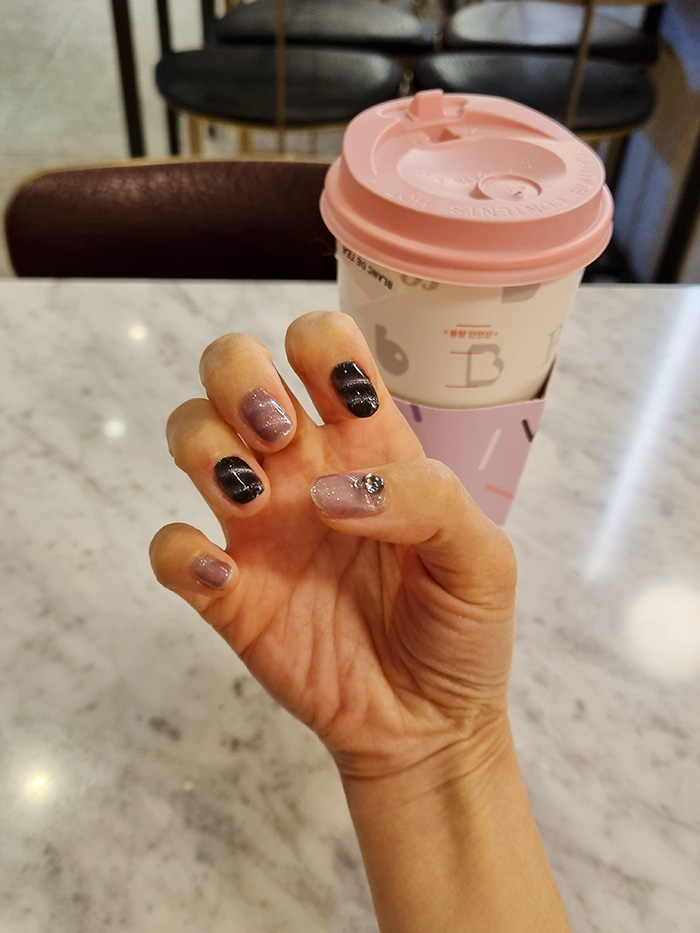 네, 제 손가락이 조금 짧은 편이라 엣지있는 완성샷을 찍기가 의외로 어렵습니다.