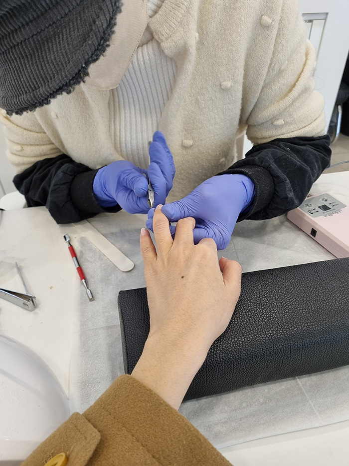 니트릴장갑을 끼고 손톱 하나하나 세심하게 관리해주셨어요~~