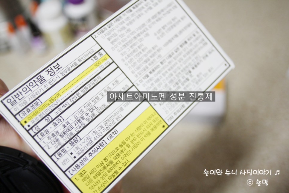 만약의 경우를 대비해 해열 진통제를 준비해 두려고 약국을 찾아다녔지만 타이레놀 구하기가 하늘의 별따기였죠.우리 부부가 가끔 먹는 해열 진통제는 이부프로펜 계열로, 집에 있는 것도 타이레놀ER도 얼마 남지 않았기 때문에, 타이레놀과 같은 성분인 아세트아미노펜인 약을 구입해 두었습니다.