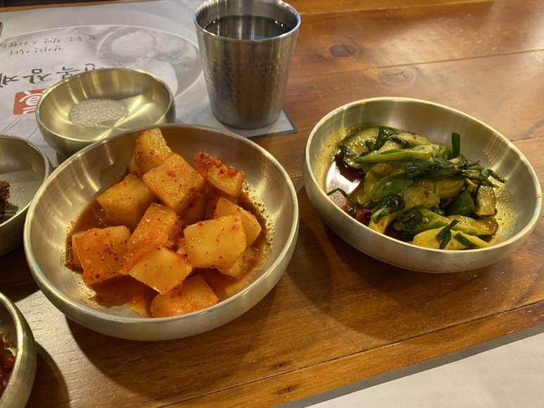 여기 만찬도 제대로 시골 반찬이었어요깍두기 시골 오이김치