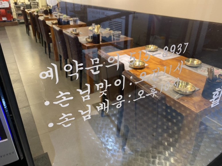 ‘진전복삼계탕’ 운영시간은 오픈, ‘클로즈’가 아닌 ‘손님맞이시간’, ‘손님맞이시간’이라고 쓰여진 문구가 왠지 따스하게 느껴집니다. (웃음) 오전 11시 오픈을 시작으로 오후 10시까지 영업합니다.그리고 예약도 가능합니다!!예약문의는 02-515-8937 요길~~