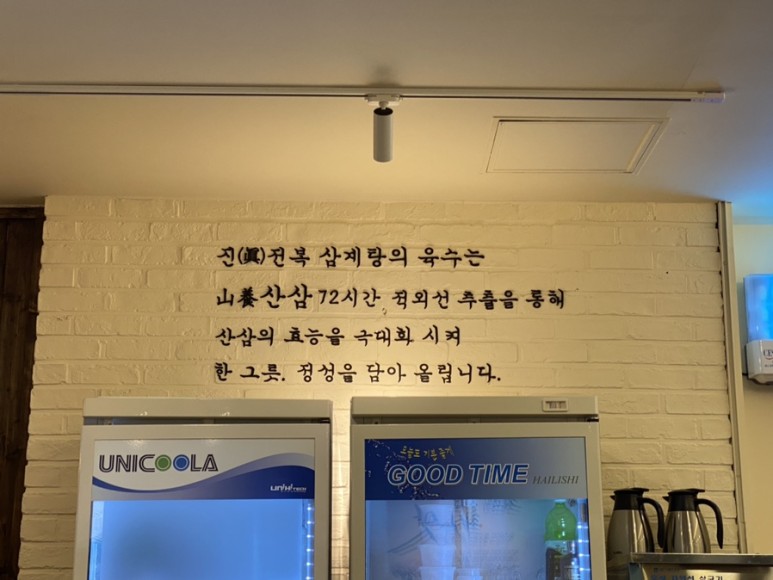 이곳의 국물은 산삼 72시간 동안 적외선 추출을 통해 산삼의 효능을 극대화 시키고 한 그릇에 정성을 다하여 올린다는 것을 먹으면 정말 없던 힘이 납니다. 후후후
