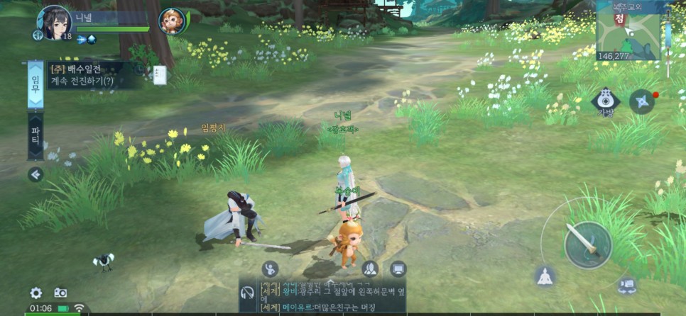 게임은 스토리(퀘스트)를 해나가는 것입니다.줄거리는 일정 수준이 되어야 열리므로 본 줄거리 이외에 퀘스를 하면서 레벨업을 하기도 합니다.