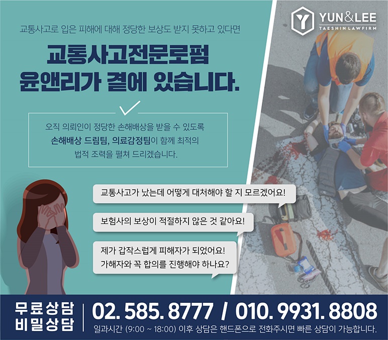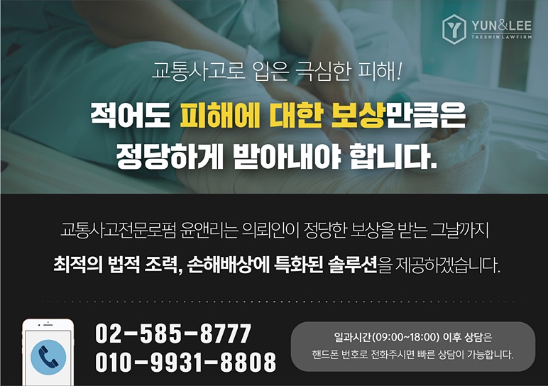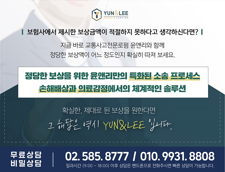 때문에 모든 사건에서 교통사고 변호사의 조력이 필요하다고 보기는 어렵지만 현재 사고로 인한 피해 규모 자체가 큰 경우라면 앞서 강조해서 설명한 것처럼 무작정 보험사의 합의 제안에 납득하기보다는 정당한 배상을 요구할 수 있도록 즉시 교통사고 변호사를 선임하여 대응 방향을 전략적으로 세워나가길 바란다고 했습니다.