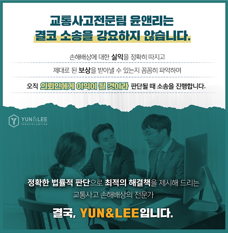 이를 보고 객관적으로 현재의 피해사실에 비해 정당한 보상을 받을 수 있도록 유리한 방향을 도출해야 하기 때문에 결국 교통사고 민사소송이라는 것은 법리적 지식은 물론 사고현장에 필요한 전문적인 능력과 의학적 지식 및 경험이 바탕이 되어야 할 복합적인 고도의 소송이라고 했습니다.