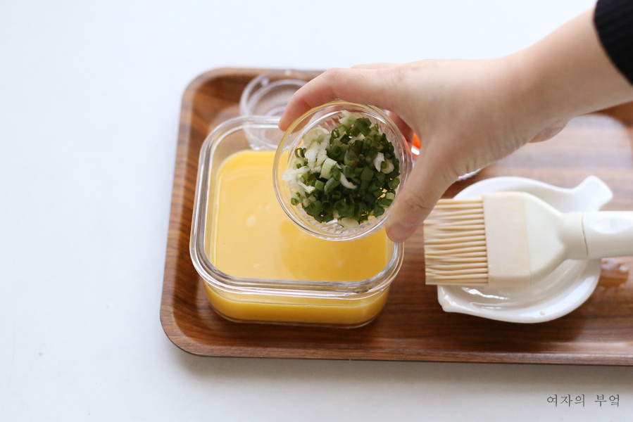 달걀 간은 새우젓국으로 만들고 맛술을 약간 넣어 비린내를 없앤다.새우젓이 없다면 국간장도 괜찮다.