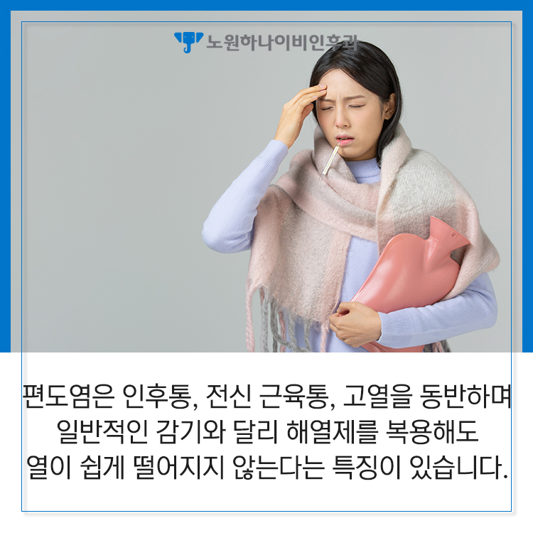 안녕하세요. 최선의 진료, 정성을 다하는 노원하나이비인후과입니다.환절기나 일교차가 클 때 인후통이 생기는 경우가 많은데요. 그러나 여름철에도 냉방기 사용으로 실내와 밖의 온도차가 커지고 주변 환경이 건조해지면서 인후통이 나타날 수 있습니다. 인후통과 열이 동반될 경우에는 편도염을 의심해볼 수 있습니다. 오늘은 저희 병원 하나이비인후과와 함께 편도염을 동반한 편도염에 대해 알려드리고자 합니다.