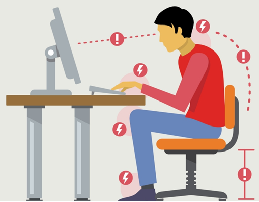 한 자세로 오래 작업하다 보면 우리 몸의 다양한 근육이 과도하게 긴장하고 목, 어깨, 허리 등의 근육이 지치고 결립니다.