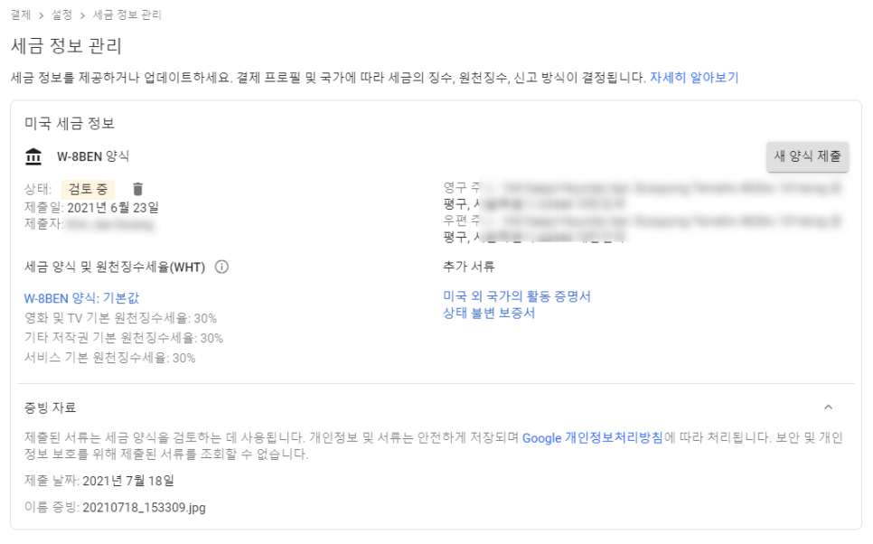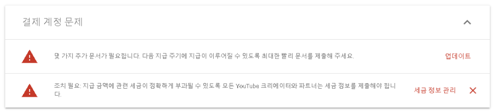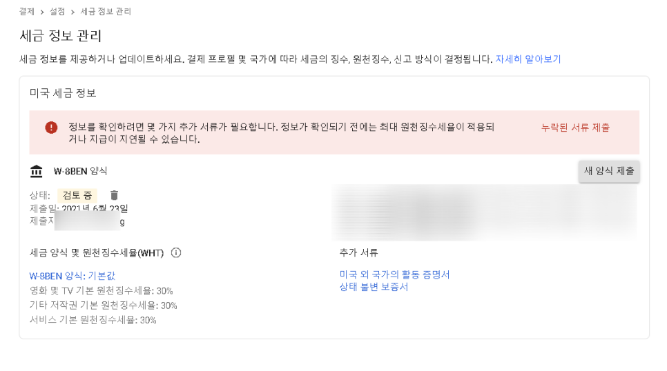 결제 계정 문제다. 문서 제출도 해야 하고 세금 정보 관리도 해야 한다.