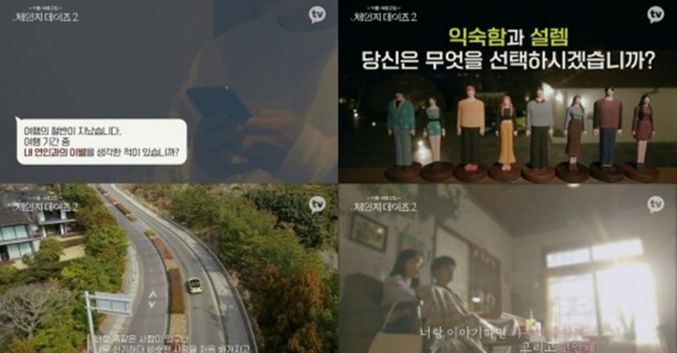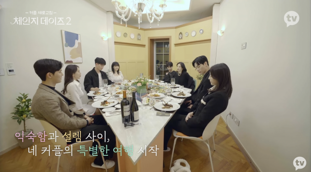 체인지데이즈2 몇부작이야? 일지는 아직 정확히 공개되지 않았다. 체인지데이즈 1편은 16화, 그리고 스페셜하고 뒷이야기 1편까지 총 17화로 구성되어 있다. 2주 여행이라 한 편보다 길 수 있지만 앞서 말한 대로 분량은 시즌2 첫 회부터 1시간 18분이나 됐으니 비슷하지 않을까 하는 예상은 한다. 첫 회에서는 비긴 어게인 커플끼리 바로 시즌 2가 진행되는 장소에 도착한 후 바로 체인지데이트가 진행됐다. 그리고 나이, 직업, 기존 연인 이야기’를 하지 못한 채 곧바로 이상형에 가까운 사람을 매칭시켜 서막을 열었다.