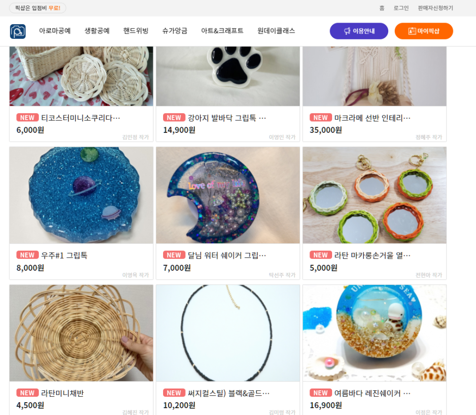 수수료나 입점료가 없는 무료 핸드메이드 사이트를 마음껏 이용할 수 있지만, 여기에 등록한 제품은 네이버 쇼핑과 쿠팡 등 20여 종의 오픈 마켓에 자동 연동이 가능합니다.